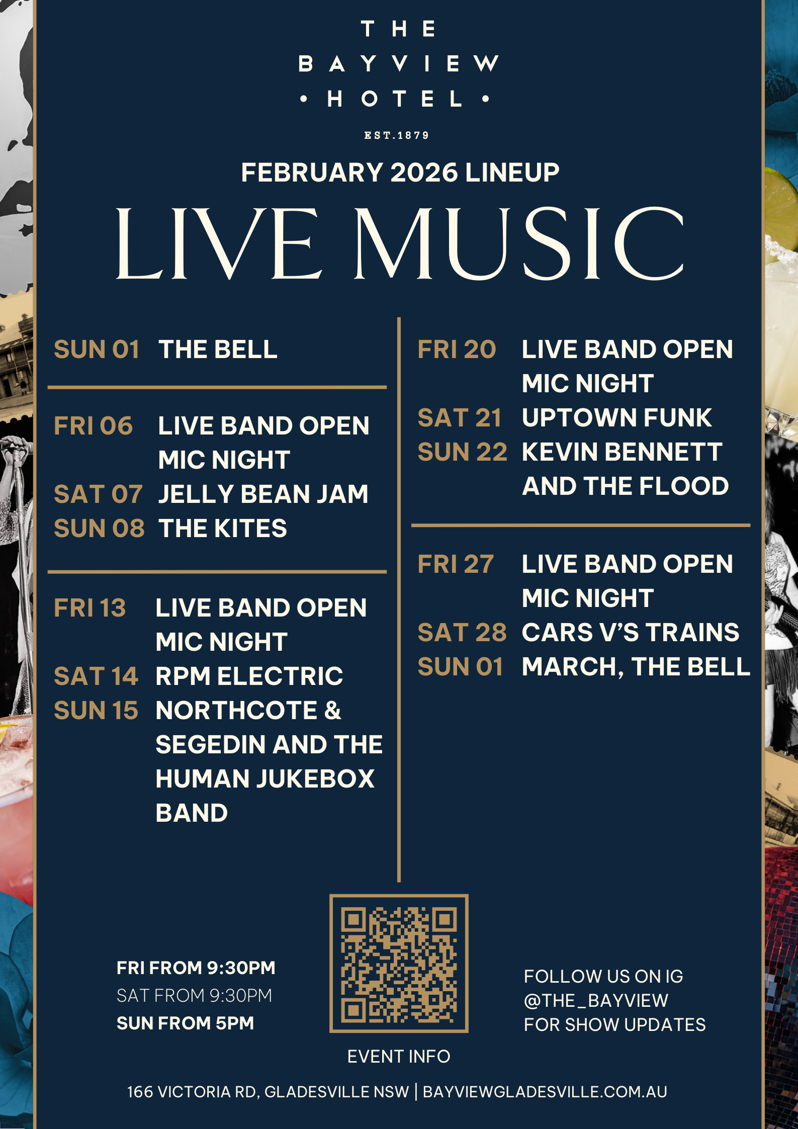 Live music is what we do best at The Bayview — and the February line-up is looking seriously good. From local legends to rising stars, there’s something for every music lover. Come in, grab a drink, and let the good times roll all weekend long.